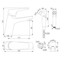 770300001 Origin Bit, смеситель для умывальника без дк с гигиеническим душем