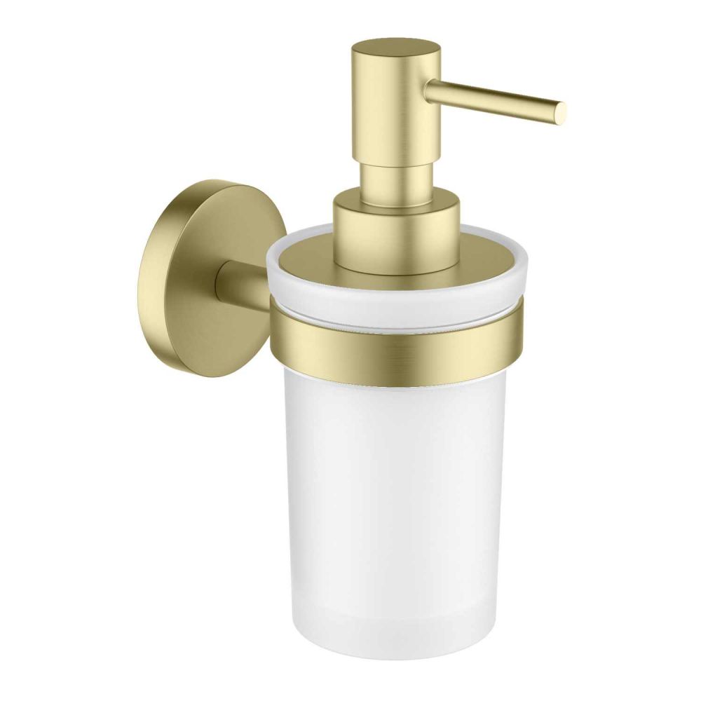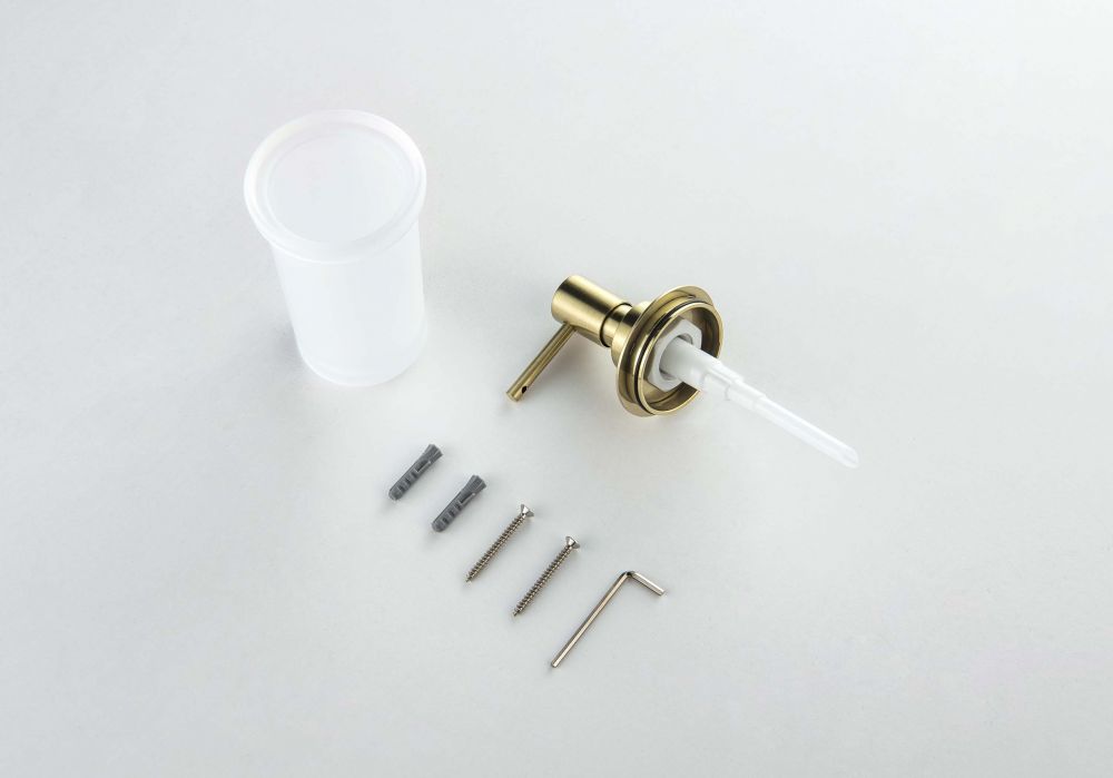 Материал - латунь Стакан из матового стекла Головка дозатора из цинкового сплава Держатель из нержавейки Упаковано в белую коробку Размеры: 69*111*163мм