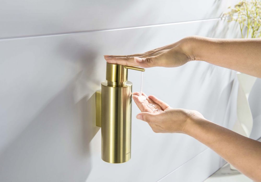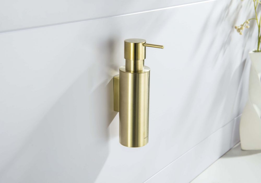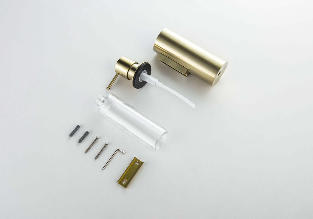 Головка дозатора из латуни Емкость 250мл из нерж. Держатель из латуни Упаковано в белую коробку Размеры: 60X100X202мм
