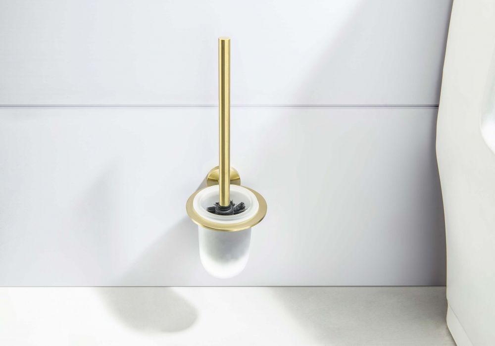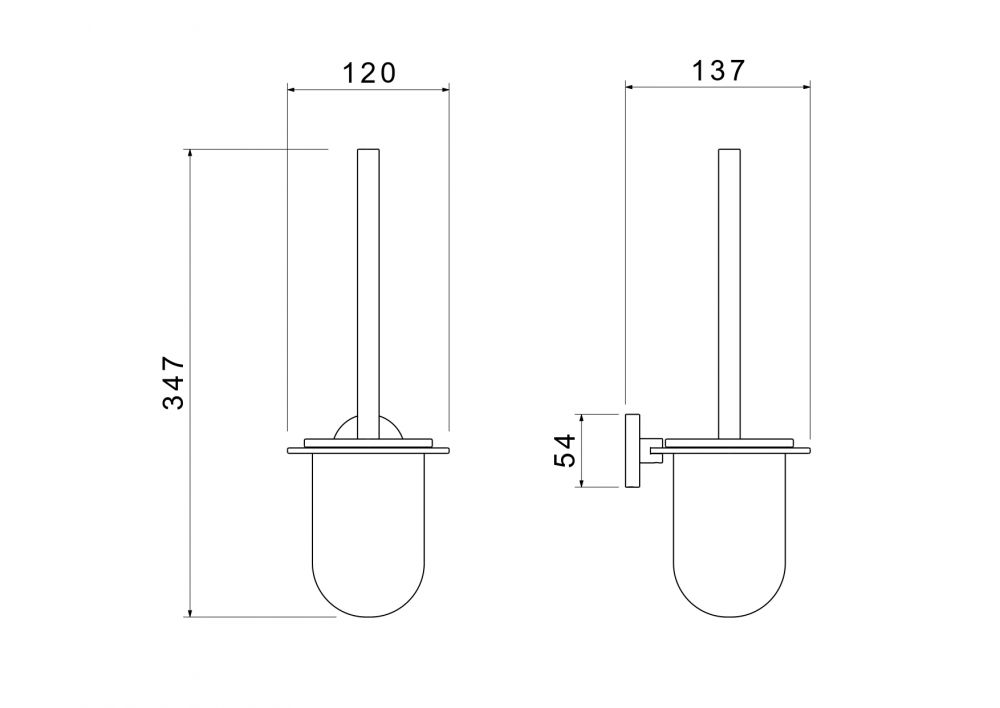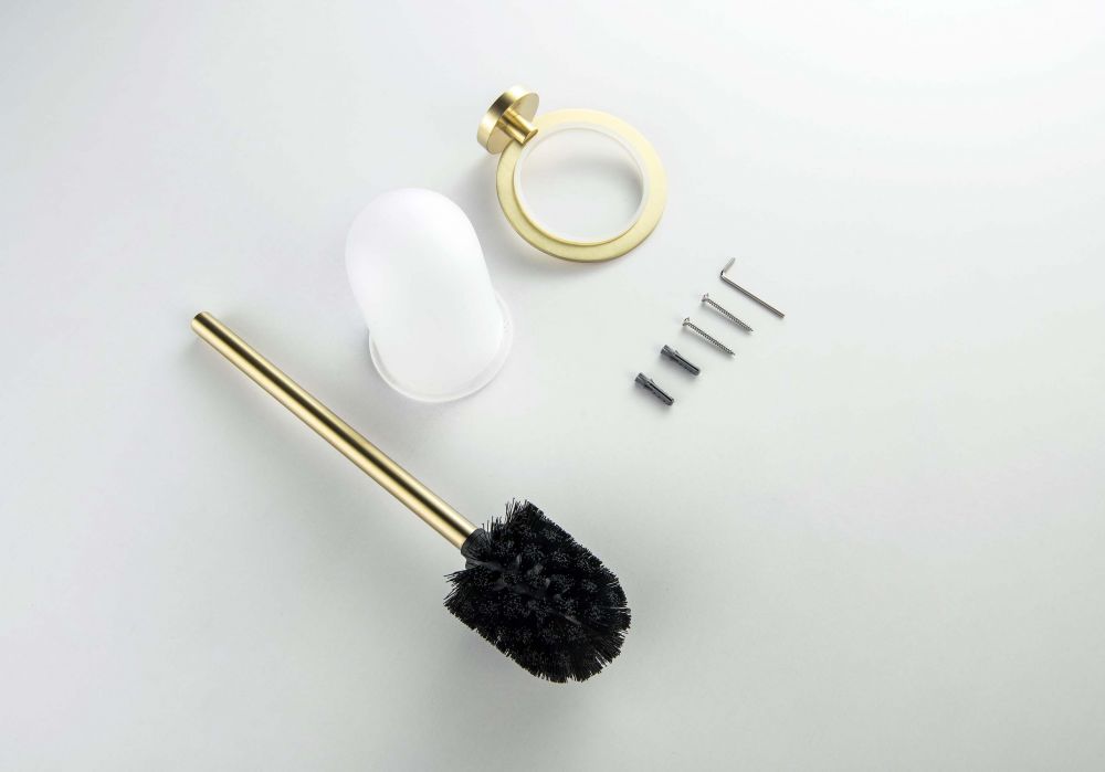 Материал - латунь Стакан из матового стекла Головка ершика из пластика, цвет черный Держатель из нержавейки Упаковано в белую коробку Размеры: 120*137*347мм