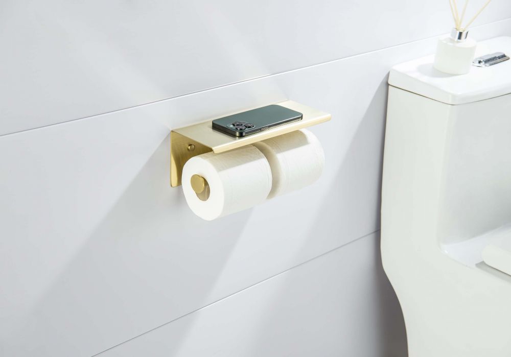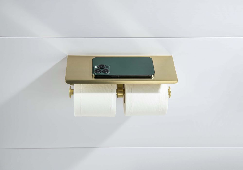 AQ4909BG ОБЕРОН бумагодержатель двойной с полкой, шлиф. золото