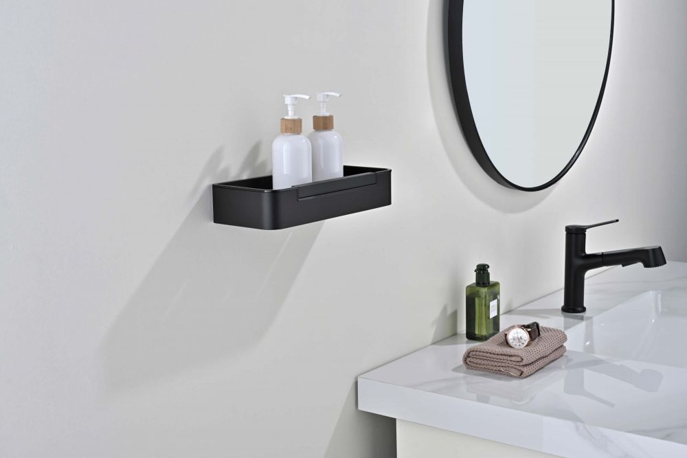 AQ4966MB полка для душа со стеклоочистителем, матовый черный