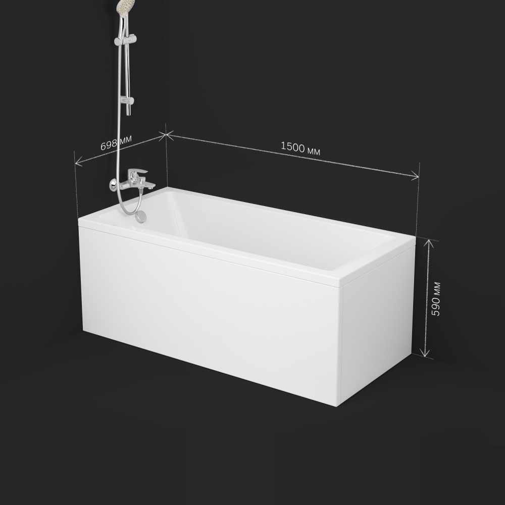 W90A-150-070W-P Gem, панель фронтальная для ванны 150х70, см