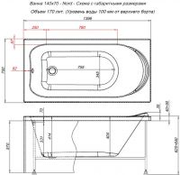 Акриловая ванна Aquanet Nord 140x70, с каркасом