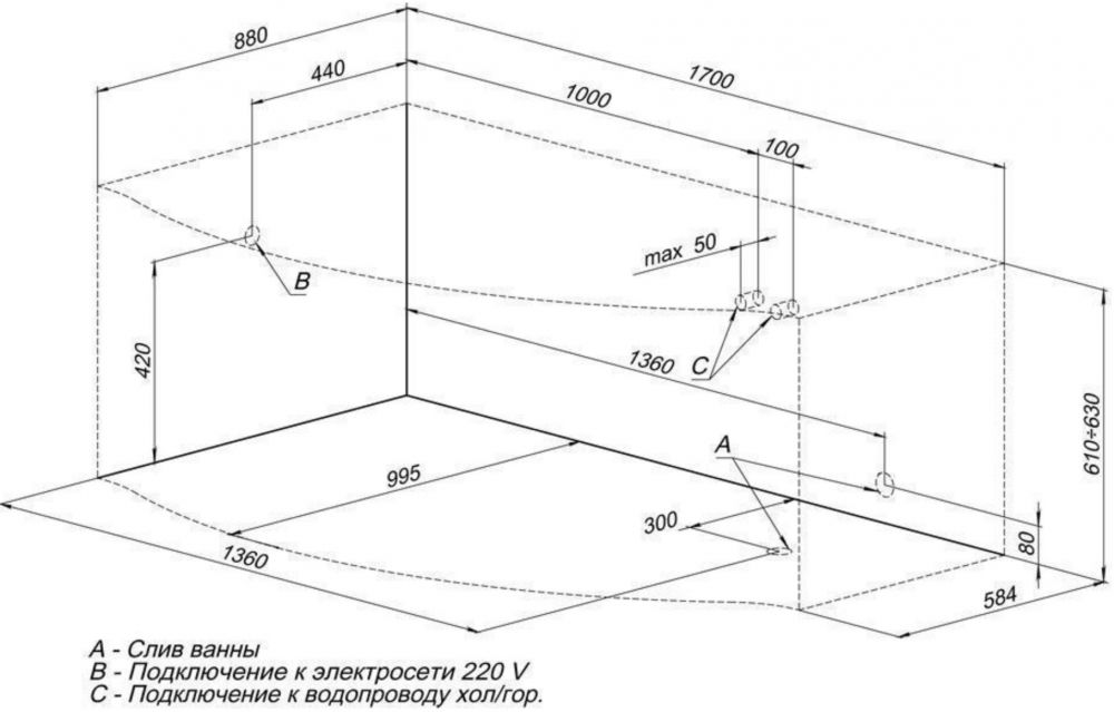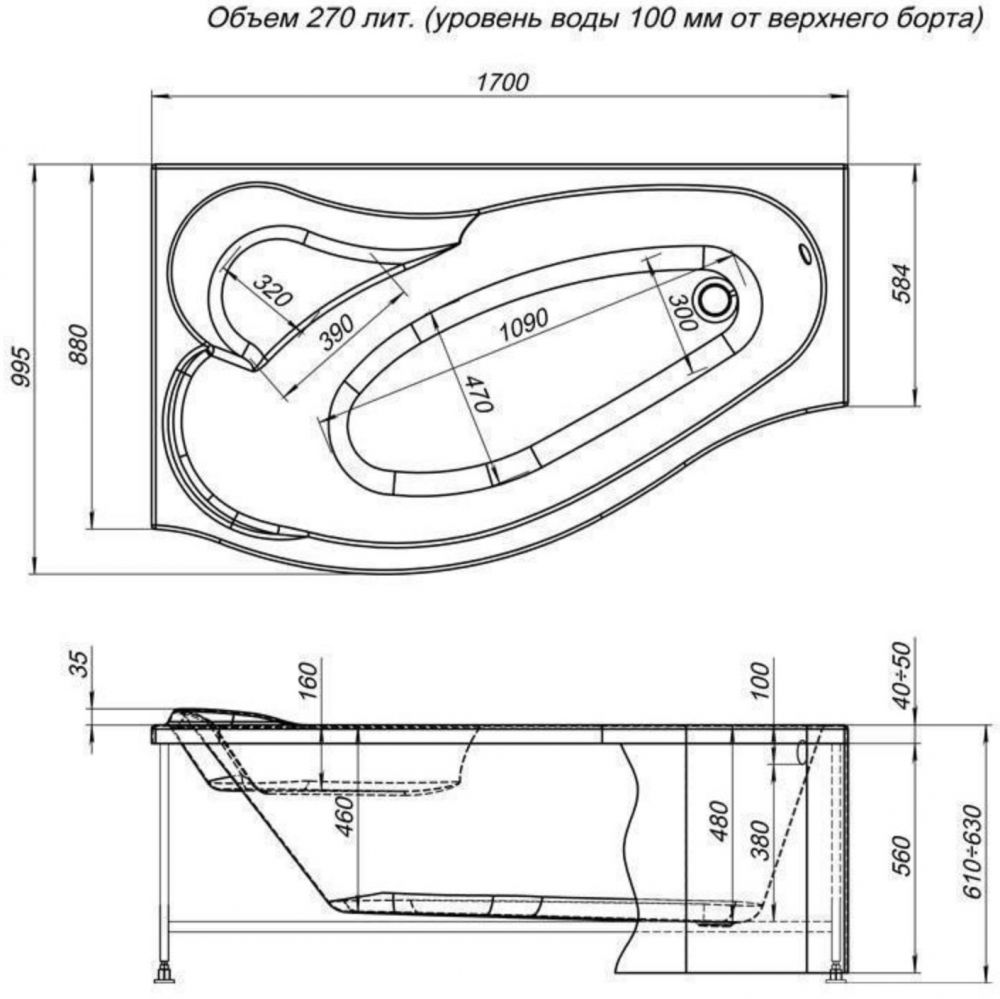 Акриловая ванна Aquanet Palma 170x90/60 L, с каркасом