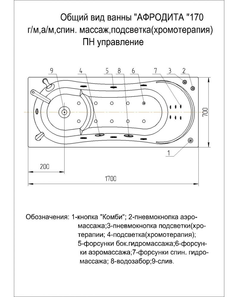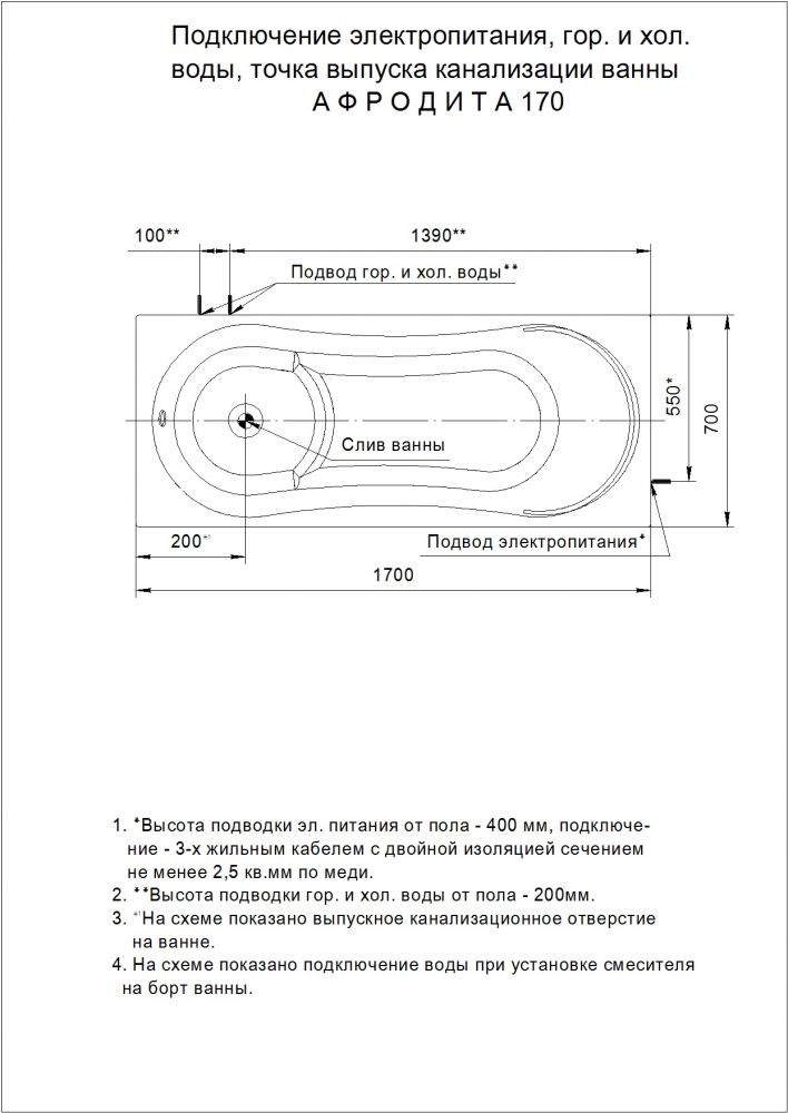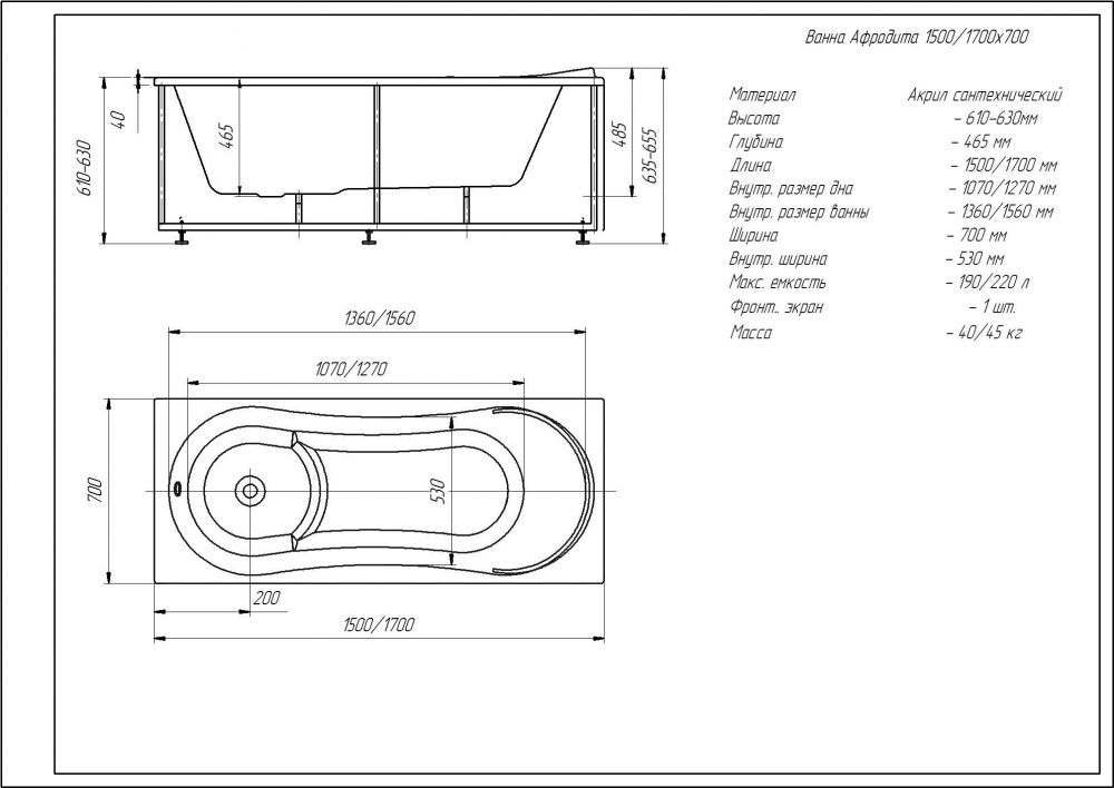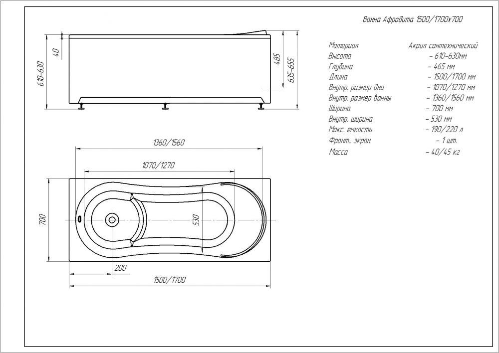 Акриловая ванна Aquatek Афродита 170x70 прямоугольная, AFR170-0000122