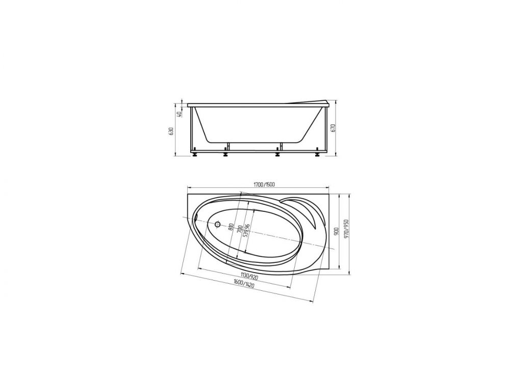 Акриловая ванна Aquatek Бетта 150x95 асимметричная, левая, (только ванна с уп.)