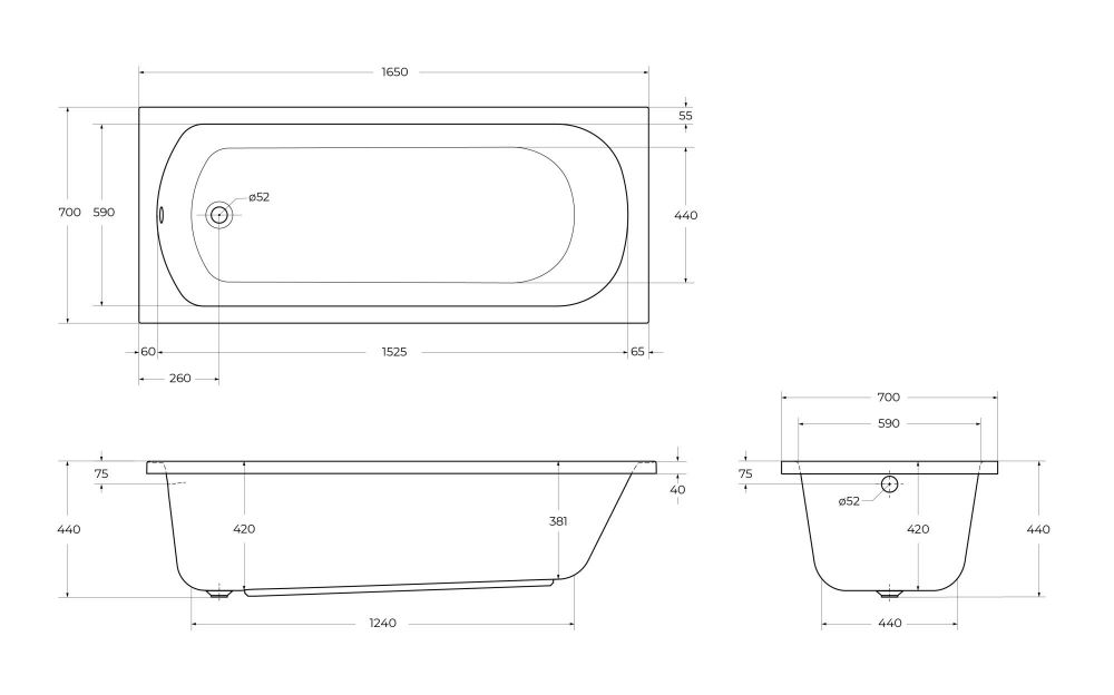 Акриловая ванна CEZARES ECO-165-70-41-W37