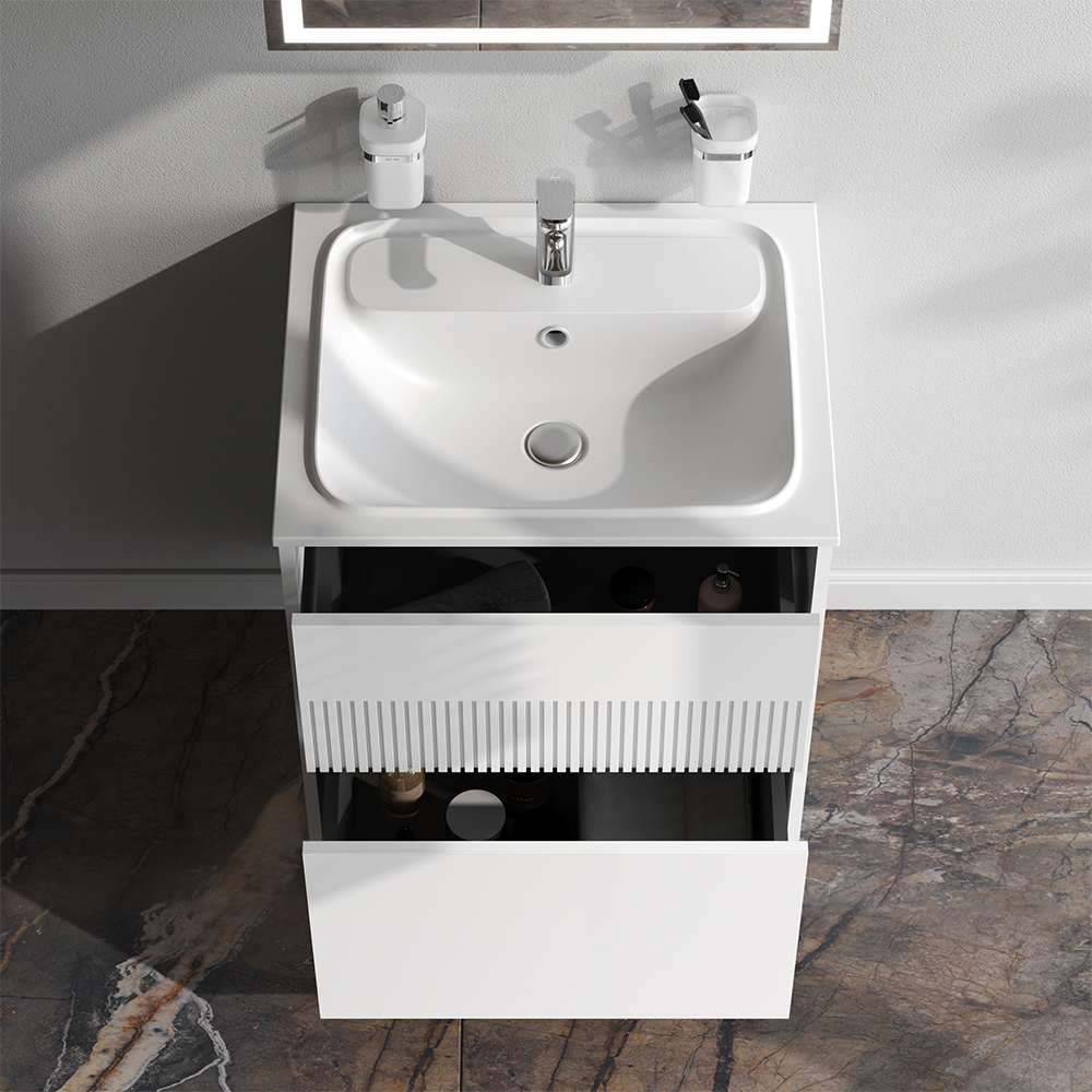 Коллекция мебели Func отличается своей функциональностью вариативностью и мобильностью. Наши инженеры продумали и учли каждую деталь чтобы сделать взаимодействие с продуктами максимально простым и комфортным для всех членов семьи. Четыре дизайнерских сочетания от всемирно известной студии Design3 (Германия): белый глянец белый матовый дуб крафт черный матовый. Удобный выдвижной ящик и вместительная открытая ниша позволяют хранить все необходимые средства под рукой. Невероятно мягкое открытие и закрытие благодаря направляющим скрытого монтажа с системой soft close. Универсальный монтаж подвесной и напольный (комплект ножек приобретается отдельно). Экологически чистые и удивительно долговечные полиакриловые эмали – специальная технология покраски в 7 слоев превосходит технологию нанесения автоэмали у ведущих немецких марок и обеспечивает насыщенный цвет в течение всего срока службы (от 10 лет).