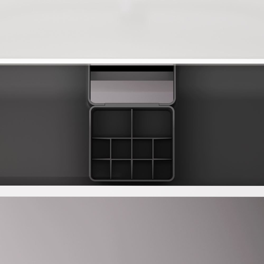 Подвесная база Above от AM.PM — баланс форм в актуальной минималистичной эстетике с утонченным силуэтом. Коллекция Above играет с пространством создавая ощущение лёгкости и простора. Это достигается за счет аккуратного запила фасада и корпуса под углом 45°. Каждая линия работает на эффект невесомости и создаёт ощущение простора даже в компактной ванной комнате. Дизайн разработан студией DanelonMeroni (Великобритания / Италия) и отражает философию коллекции — максимум визуального эффекта без лишних деталей. Выдвижной ящик из ЛДСП толщиной 12 мм имеет антискользящее покрытие. Съёмный органайзер в комплекте позволяет рационально организовать пространство а пластиковый обвод сифона сохраняет полезный объём. Направляющие Pull-out с механизмом Soft Close обеспечивают плавное и бесшумное закрывание превращая ежедневное использование мебели в приятный ритуал. Фасады окрашены глянцевой итальянской эмалью в 7 слоёв обеспечивая насыщенный и глубокий цвет. Такое покрытие устойчиво к ежедневной эксплуатации и надолго сохраняет премиальный внешний вид. ""