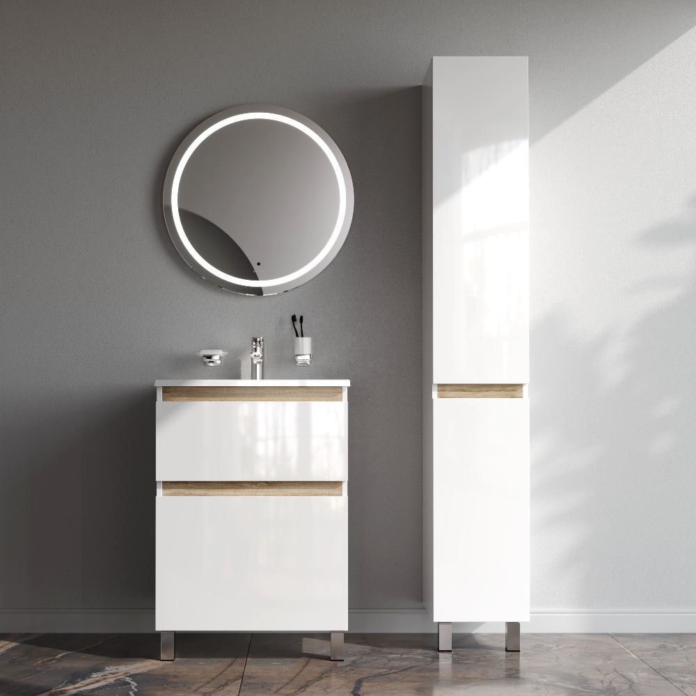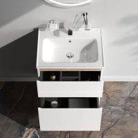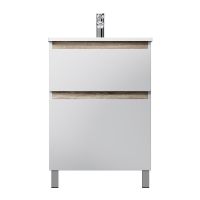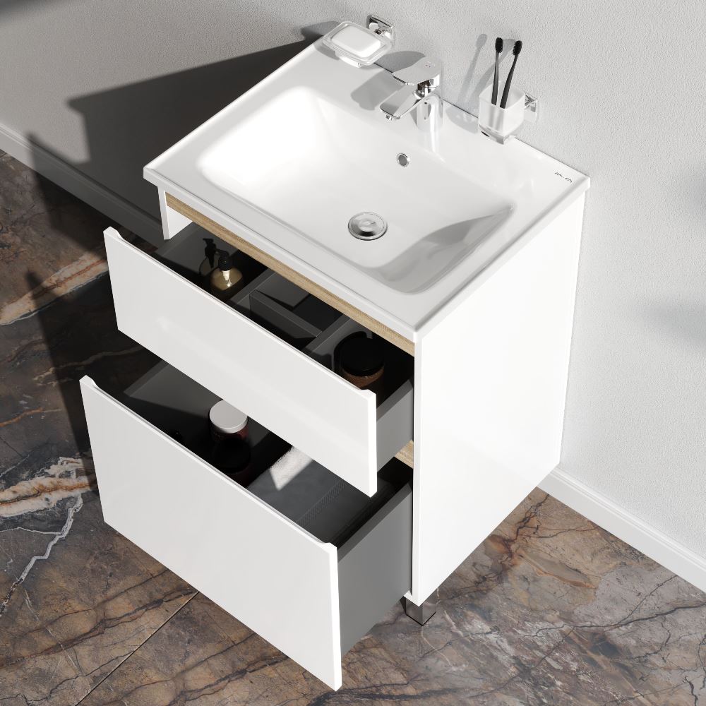 Напольная тумба бренда AM.PM коллекции X-Joy отличается эстетичным сочетанием цветов и фактур от дизайн-агентства Danelon Meroni: белые глянцевые фасады дополнены отделкой под светлое дерево. Функциональный органайзер в первом ящике позволит хранить необходимые косметические средства под рукой и в полном порядке. Внутреннее покрытие каждого ящика выполнено в современном цвете "антрацит" и имеет противоскользящее покрытие.​ Материал изделия - МДФ ЛДСП. Размер тумбы (Ш/Г/В): 575x445x830. Цвет тумбы - белый глянец. Экологически чистые и удивительно долговечные полиакриловые эмали – специальная технология покраски в 7 слоев превосходит технологию нанесения автоэмали у ведущих немецких марок и обеспечивает насыщенный цвет в течение всего срока службы (от 10 лет). Дополните тумбу раковиной коллекции X-Joy от европейского бюро Danelon Meroni (Великобритания/Италия). Чаша раковины создана с увеличенным объемом и элегантным бортиком по контуру. Раковина выполнена из белоснежного сантехнического фарфора. Размер раковины (Ш/Г/В): 590x450x172 мм. Цвет раковины - белый. Преимущества и функции: функционал хранения бытовой химии в тумбе с раковиной обеспечивает организованное и безопасное размещение моющих средств что способствует поддержанию порядка и упрощает доступ к необходимым материалам в процессе уборки. Оптимизация хранения вещей внутри ящиков. Грамотно расположенные скрытые коммуникации внутри тумбы. Устойчивая конструкция благодаря надежным ножкам. Бортик по контуру раковины и база под смеситель в виде острова предотвращают пролив воды за мебель. Материал раковины препятствует накоплению грязи и бактерий что облегчает чистку и поддержание гигиены. Гарантийные обязательства производителя: на раковину - 25 лет на тумбу - 3 года.