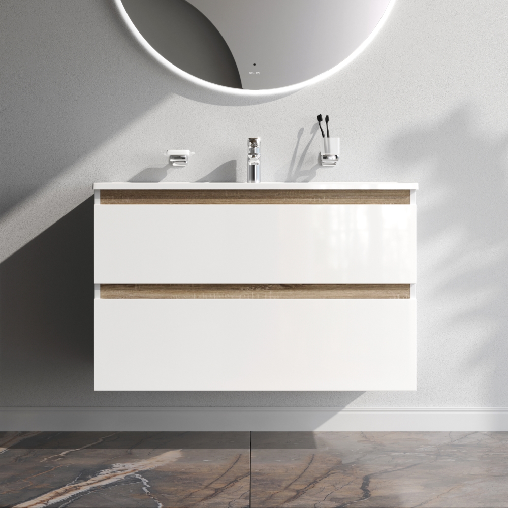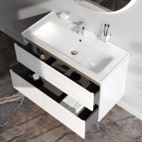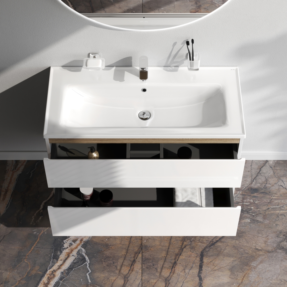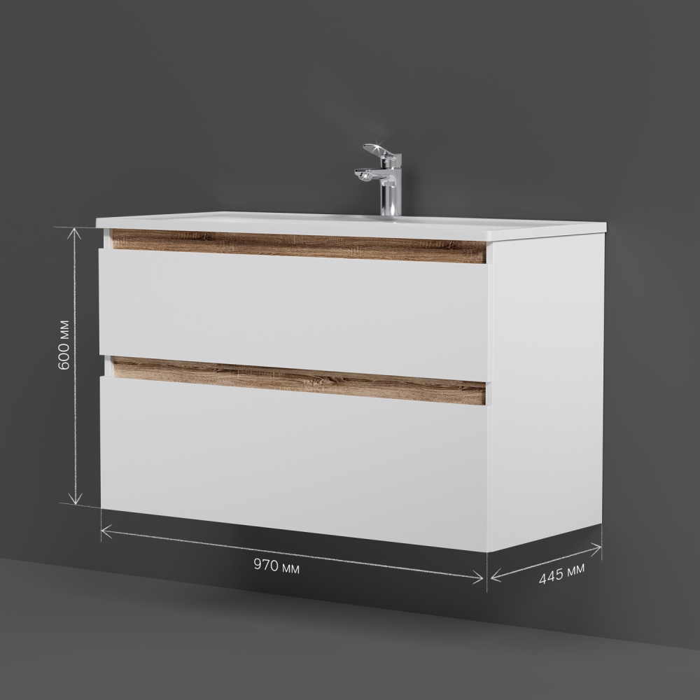 Впервые на рынке – дизайнерская коллекция сантехники которую может позволит себе каждый. Самое эстетичное сочетание цветов и фактур от дизайн-бюро Danelon Meroni (Великобритания & Италия): белые глянцевые фасады дополнены отделкой под светлое дерево. Функциональный органайзер в первом ящике позволит хранить необходимые косметические средства под рукой и в полном порядке. Внутреннее покрытие каждого ящика выполнено в современном цвете Anthracite и имеет противоскользящее покрытие.​ Встроенная керамическая раковина белоснежного цвета оснащена специальным бортиком для защиты от пролива воды за мебель. Экологически чистые и удивительно долговечные полиакриловые эмали – специальная технология покраски в 7 слоев превосходит технологию нанесения автоэмали у ведущих немецких марок и обеспечивает насыщенный цвет в течение всего срока службы (от 10 лет).