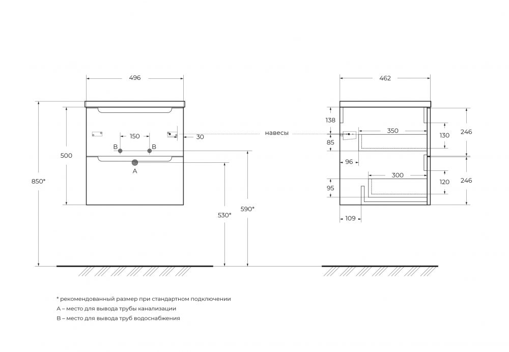 База под раковину подвесная BelBagno ETNA-500-2C-SO-BL Bianco Lucido