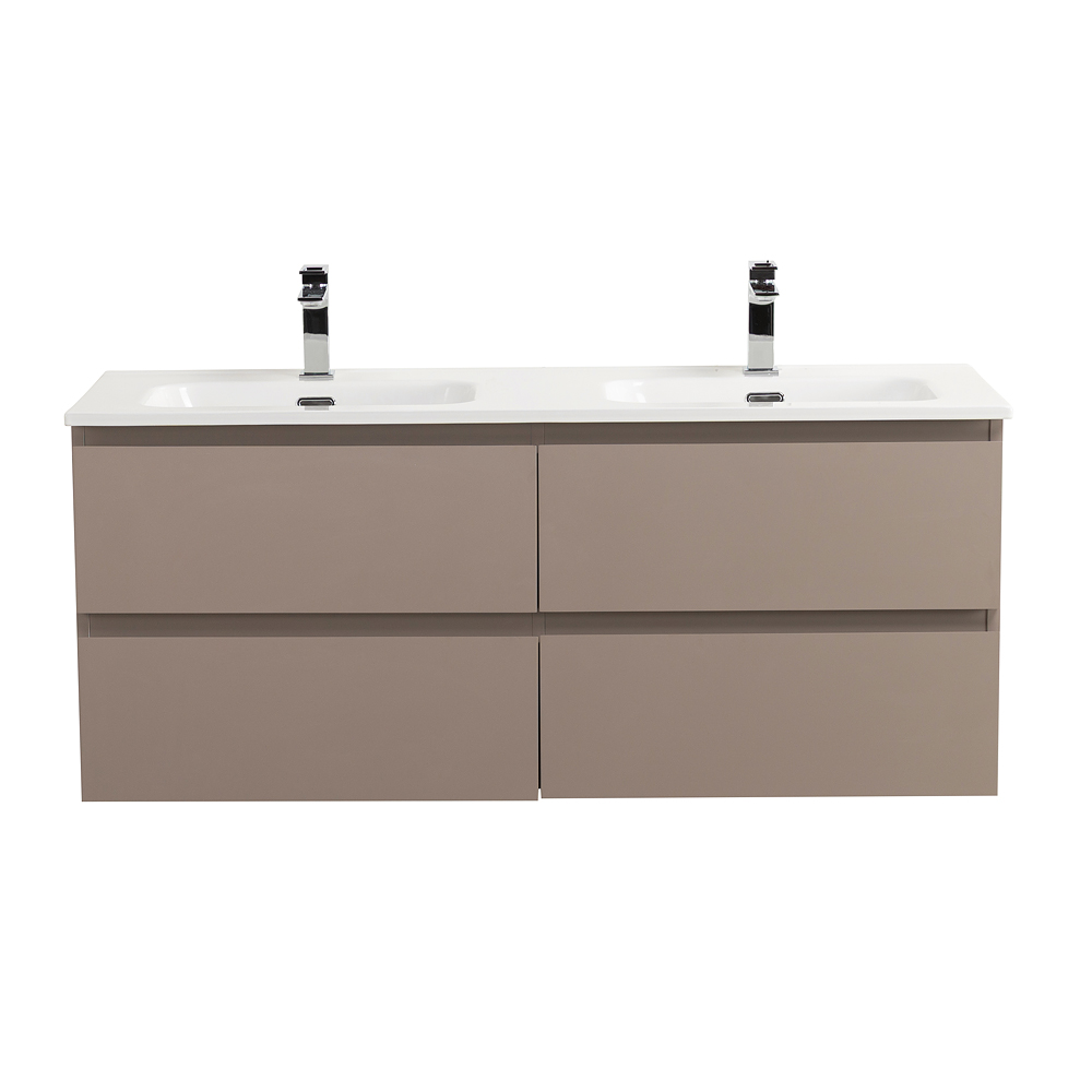 KRAFT База под раковину подвесная с фрезерованными ручками по всей длине фасада с четырмя выкатными ящиками, Бежевый матовый, 1200x455x500, KRAFT-1200-4C-SO-CO
