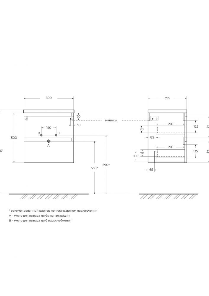 База под раковину подвесная BelBagno KRAFT 39-500/390-2C-SO-VO