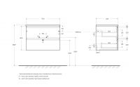 KRAFT База под раковину подвесная с фрезерованными ручками по всей длине фасада с двумя выкатными ящиками, Голубой Матовый 700x455x500, KRAFT-700-2C-SO-AO