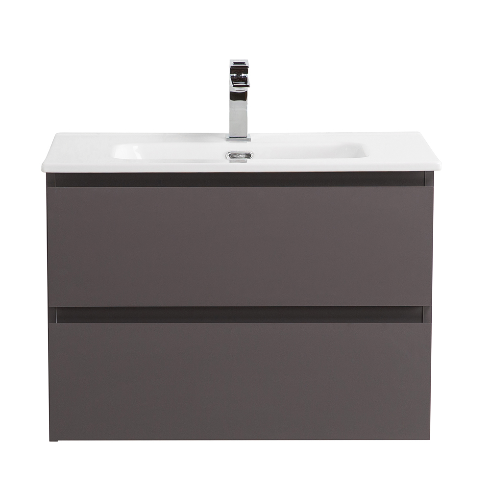 KRAFT База под раковину подвесная с фрезерованными ручками по всей длине фасада с двумя выкатными ящиками, Темно-Серый Матовый, 700x455x500, KRAFT-700-2C-SO-GSO