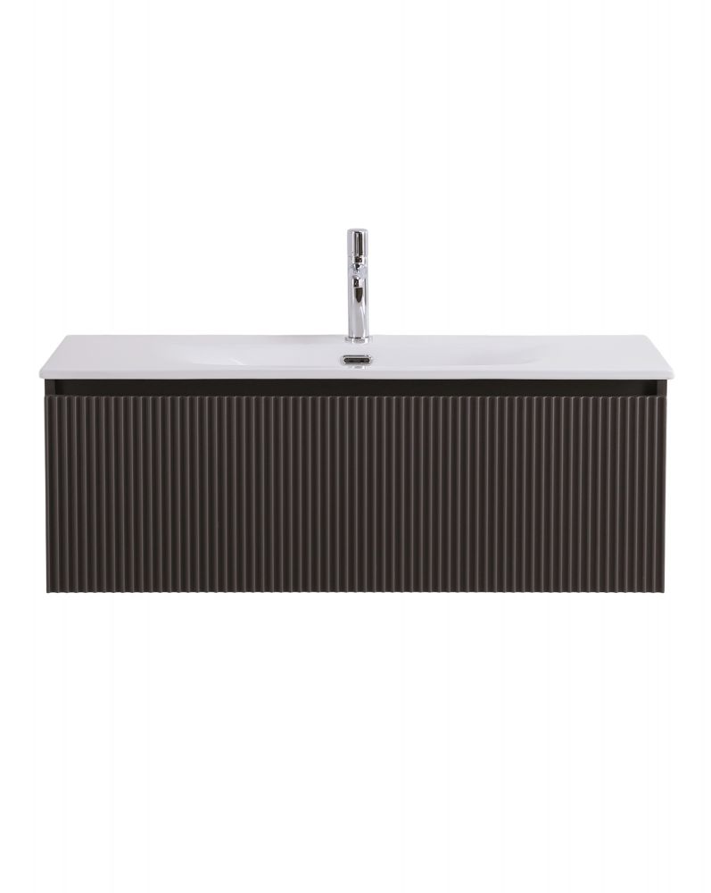 UNO База под раковину подвесная с фрезерованными ручками по всей длине фасада с одним выкатным ящиком, Темно-Серый Матовый, 1000x455x350, UNO-1000-1C-SO-GSO