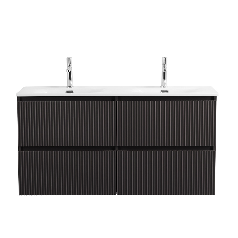 UNO База под раковину подвесная с фрезерованными ручками по всей длине фасада с четырьмя выкатными ящиками, Темно-Серый Матовый, 1200x455x608, UNO-1200-4C-SO-GSO