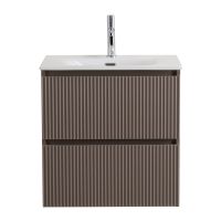 UNO База под раковину подвесная с фрезерованными ручками по всей длине фасада с двумя выкатными ящиками, Бежевый матовый, 600x455x608, UNO-600-2C-SO-CO