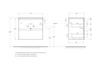 UNO База под раковину подвесная с фрезерованными ручками по всей длине фасада с двумя выкатными ящиками, Темно-Серый Матовый, 700x455x608, UNO-700-2C-SO-GSO