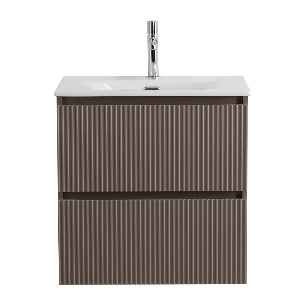 UNO База под раковину подвесная с фрезерованными ручками по всей длине фасада с двумя выкатными ящиками, Бежевый матовый, 700x455x608, UNO-700-2C-SO-CO