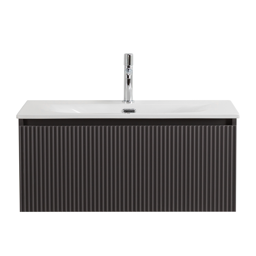 UNO База под раковину подвесная с фрезерованными ручками по всей длине фасада с одним выкатным ящиком, Темно-Серый Матовый, 800x455x350, UNO-800-1C-SO-GSO