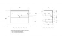 UNO База под раковину подвесная с фрезерованными ручками по всей длине фасада с двумя выкатными ящиками, Еловый Матовый, 900x455x608, UNO-900-2C-SO-VO