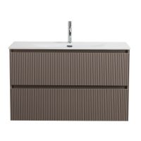 UNO-MINI База под раковину подвесная с фрезерованными ручками по всей длине фасада с двумя выкатными ящиками, Бежевый матовый, 1000x395x608, UNO-MINI-1000-2C-SO-CO