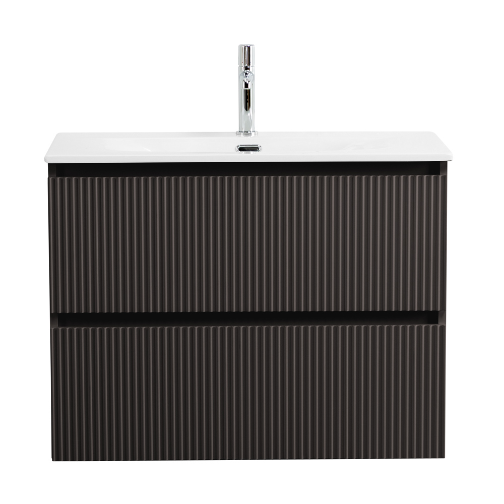 UNO-MINI База под раковину подвесная с фрезерованными ручками по всей длине фасада с двумя выкатными ящиками, Темно-Серый Матовый, 800x395x608, UNO-MINI-800-2C-SO-GSO