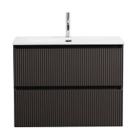 UNO-MINI База под раковину подвесная с фрезерованными ручками по всей длине фасада с двумя выкатными ящиками, Темно-Серый Матовый, 900x395x608, UNO-MINI-900-2C-SO-GSO