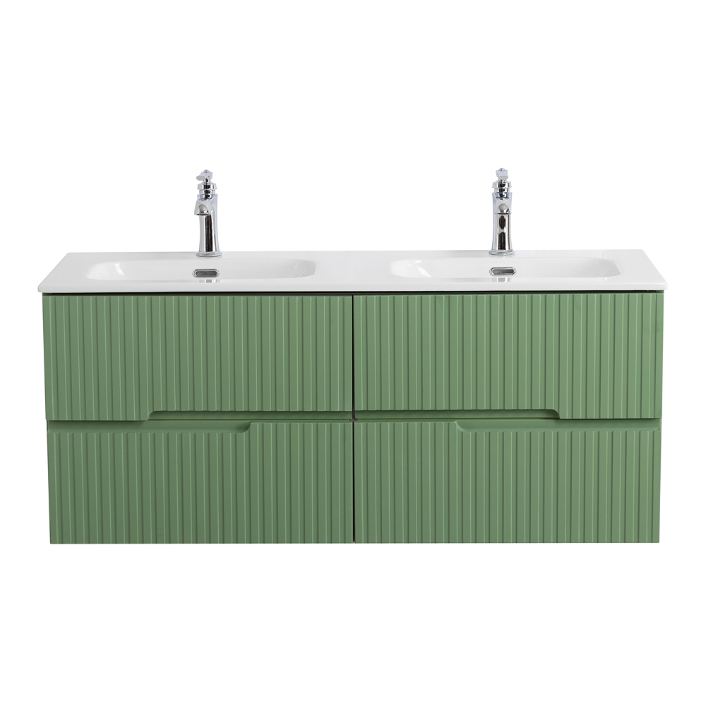 DUET-N База под раковину подвесная с четырьмя выкатными ящиками для раковины с двумя чашами, Фисташковый Софт, 1200x457x500, DUET-N-1200-4C-SO-2-PS-P