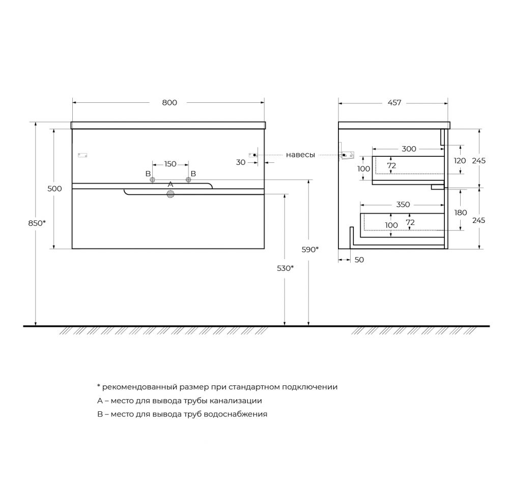 База под раковину подвесная CEZARES DUET-N-800-2C-SO-APR-P
