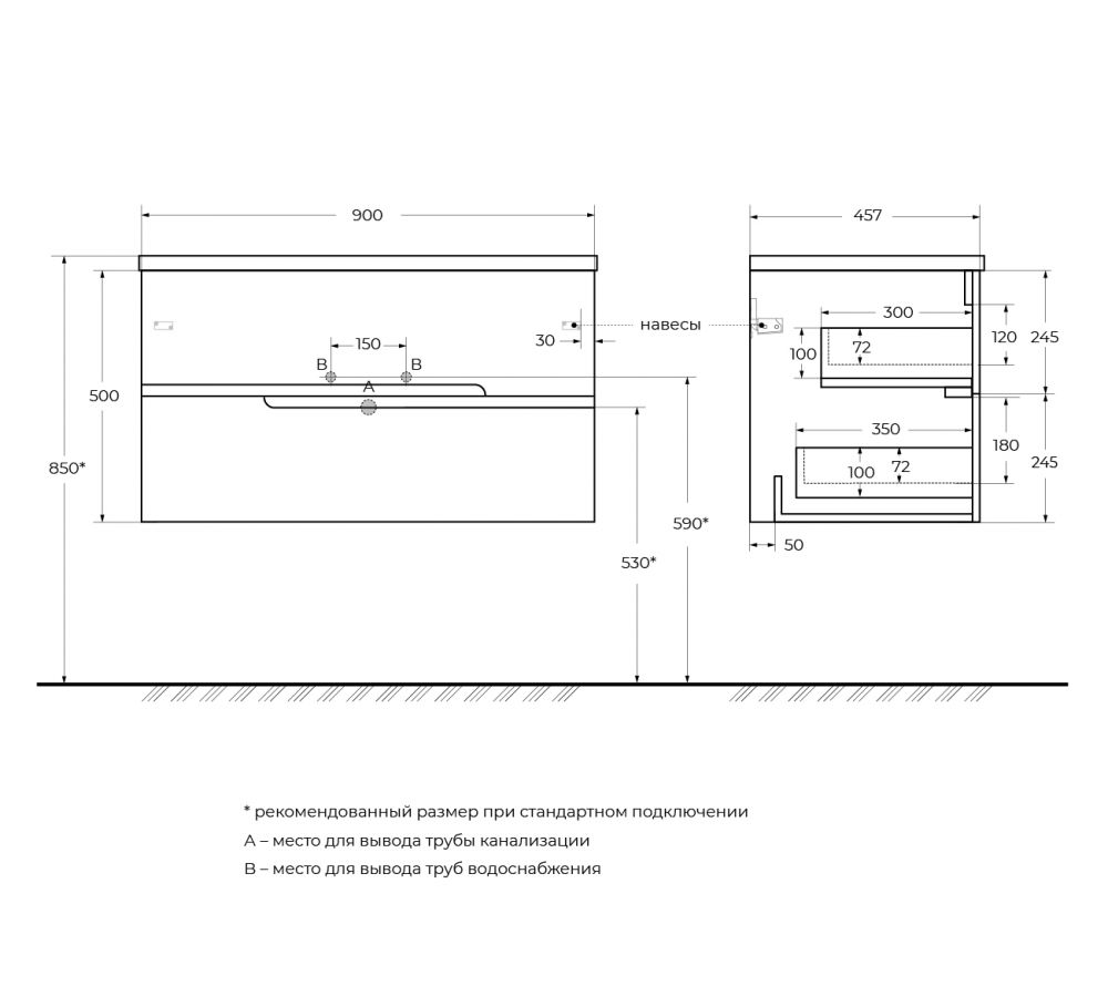 База под раковину подвесная CEZARES DUET-N-900-2C-SO-BL