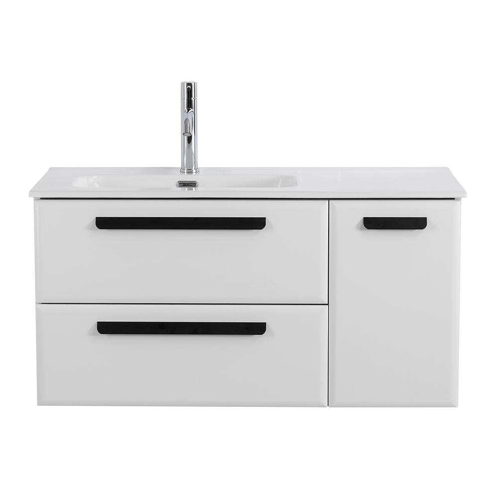 ECO-CER-N База под раковину подвесная с двумя выкатными ящиками и одной распашной дверцей, левосторонняя, Bianco Lucido, 1000x457x500, ECO-CER-N-1000-2C-1A-SO-BL-L