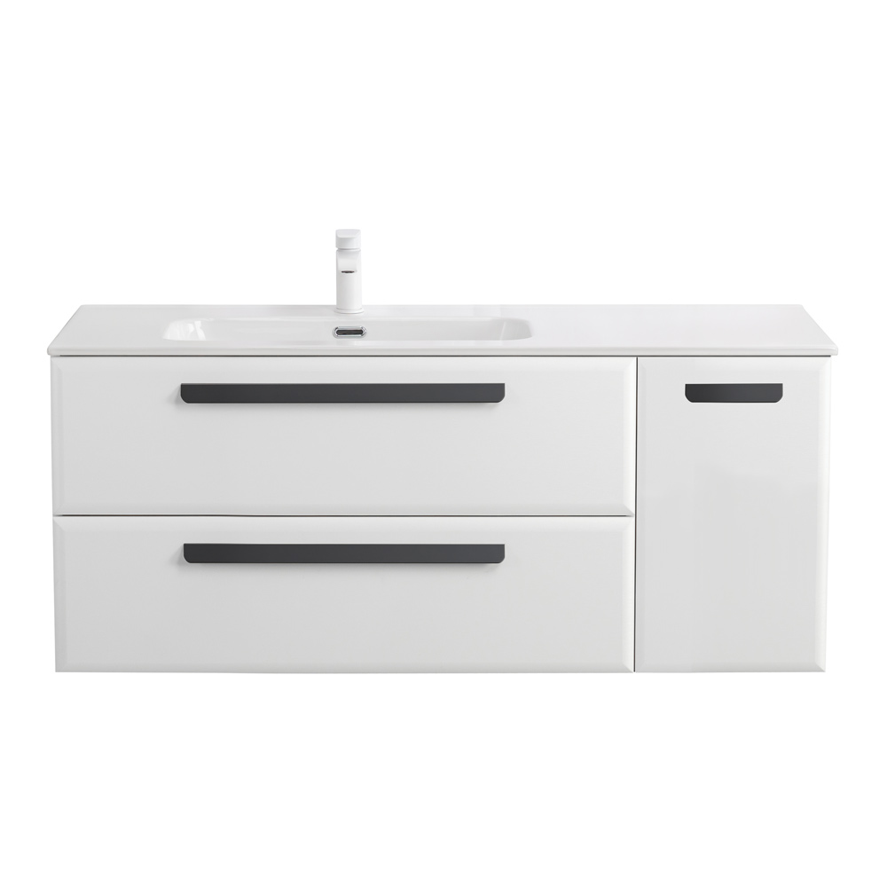 ECO-CER-N База под раковину подвесная с двумя выкатными ящиками и одной распашной дверцей, левосторонняя, Bianco Lucido, 1200x457x500, ECO-CER-N-1200-2C-1A-SO-BL-L