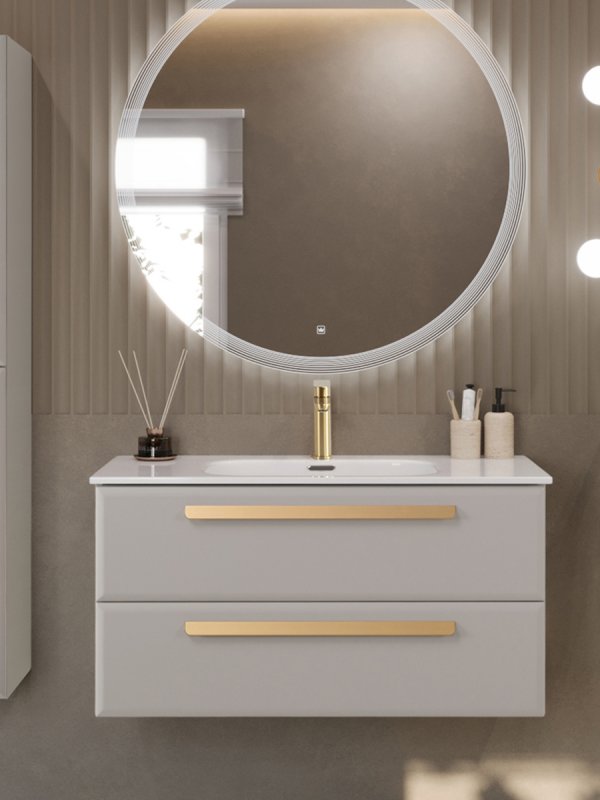 ECO-CER-N База под раковину подвесная с двумя выкатными ящиками, Серо-бежевый Матовый, 1200x457x500, ECO-CER-N-1200-2C-SO-GCO-P