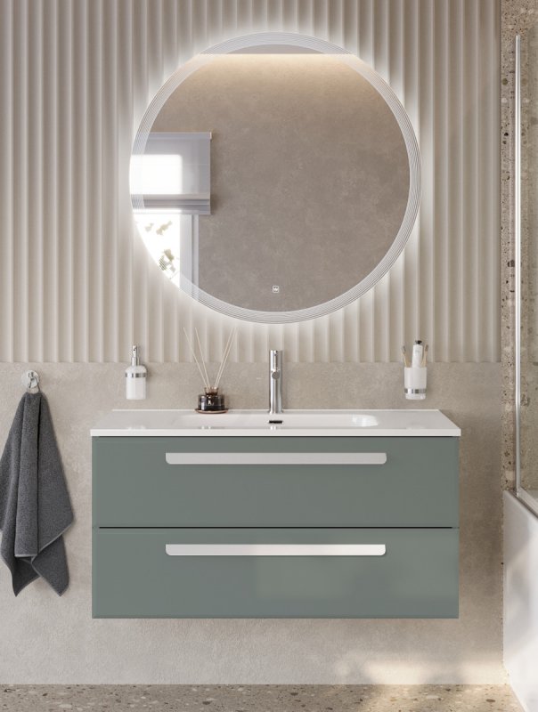 ECO-CER-N База под раковину подвесная с двумя выкатными ящиками, Серо-зеленый Матовый, 1200x457x500, ECO-CER-N-1200-2C-SO-GVO-P
