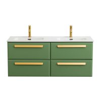 ECO-CER-N База под раковину подвесная с четырьмя выкатными ящиками для раковины с двумя чашами, Фисташковый Софт, 1200x457x500, ECO-CER-N-1200-4C-SO-2-PS-P