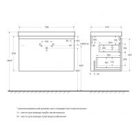 GIUBILEO-N База под раковину подвесная с одним внешним и одним внутренним выкатными ящиками, Ясень брашированный,796x443x500, GIUBILEO-N-80-1C-SO-FS-P