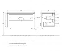 RELAX База под раковину подвесная с двумя выкатными ящиками, Сатин, 996x478x500, RELAX-1000-2C-SO-SAT-P