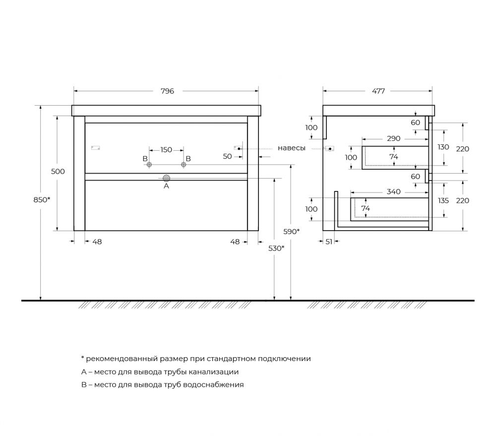 База под раковину подвесная CEZARES RELAX-800-2C-SO-BL