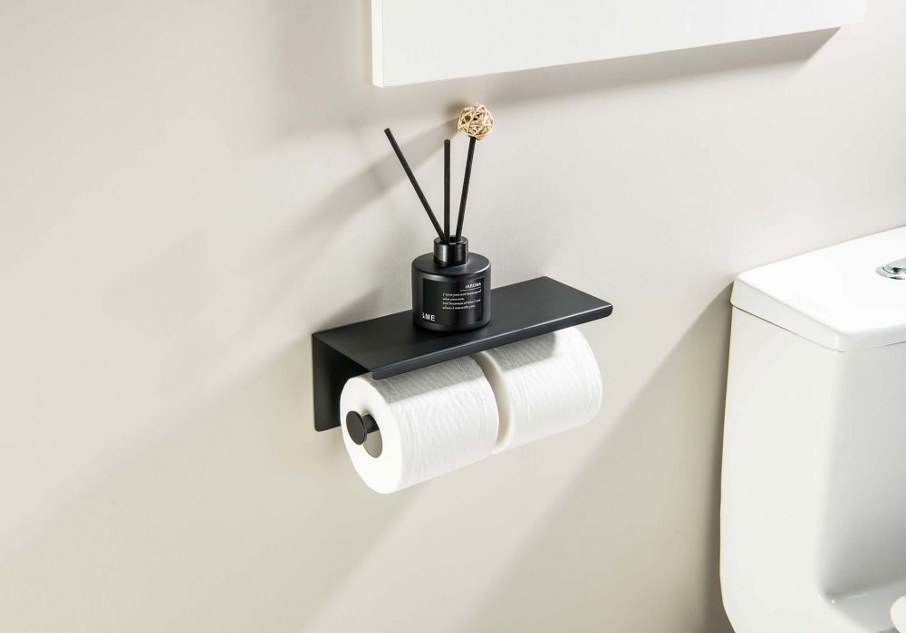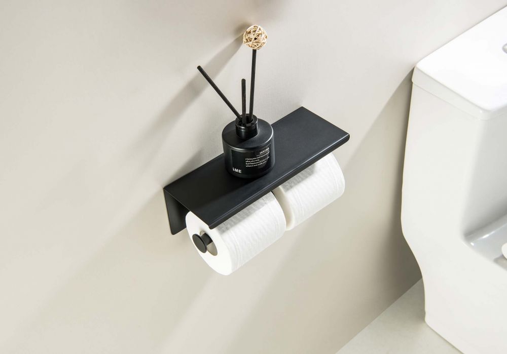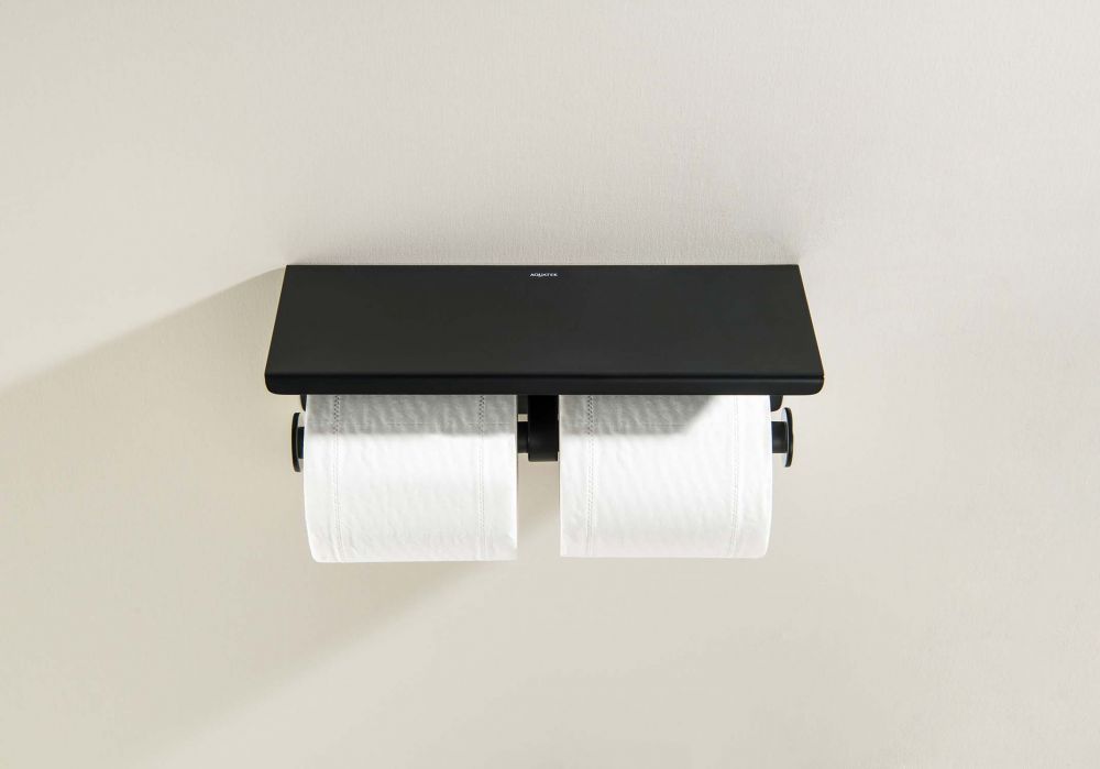 Бумагодержатель двойной с полкой AQUATEK, матовый черный AQ4909MB ОБЕРОН