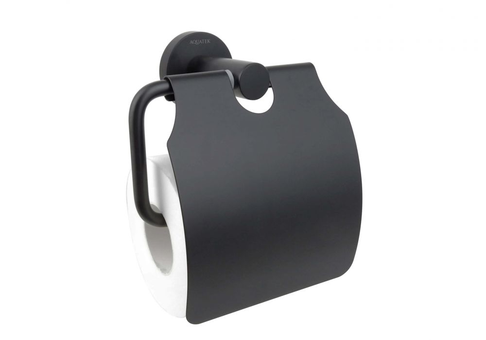 Бумагодержатель с крышкой AQUATEK, матовый черный AQ4009MB ВЕГА
