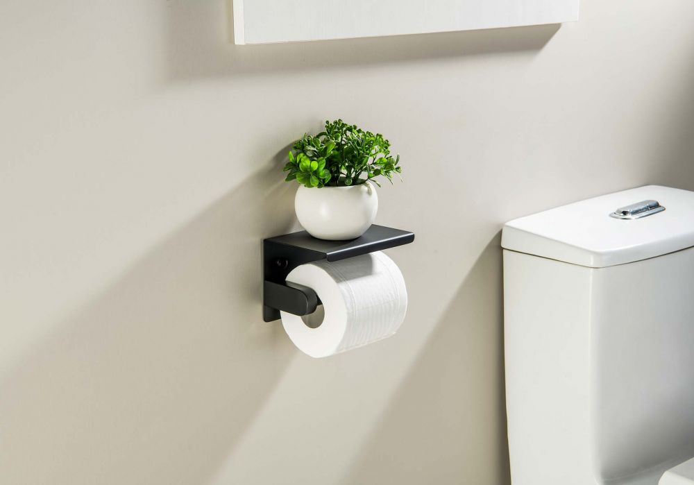 Бумагодержатель с полкой AQUATEK, матовый черный AQ4939MB ЕВРОПА