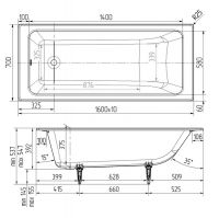 Чугунная ванна Wotte Line 1600х700х392 БП-э00д1466