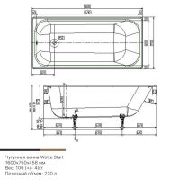 Чугунная ванна Wotte Start УР 1600х750х458 c отверстиями для ручек БП-00000002