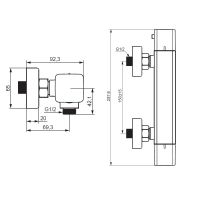 Термостатический смеситель для душа Gala идеально впишется в современную ванную комнату. Максимальная безопасность: термостатический картридж 35мм обеспечивает точную настройку температуры и напора воды. Специальная кнопка-предохранитель не позволяет случайно повысить температуру воды. Выставляйте комфортные для вас параметры легким поворотом правой ручки смесителя. Переключайте потоки воды между лейкой и верхним душем плавным поворотом левой ручки смесителя. Инновационное PVD-покрытие гарантирует чрезвычайную прочность смесителя. Матово-черная поверхность не выцветает с годами и устойчива к механическим повреждениямзагрязнениям и отпечаткам пальцев. Такой смеситель прослужит вам минимум 10 лет. ""