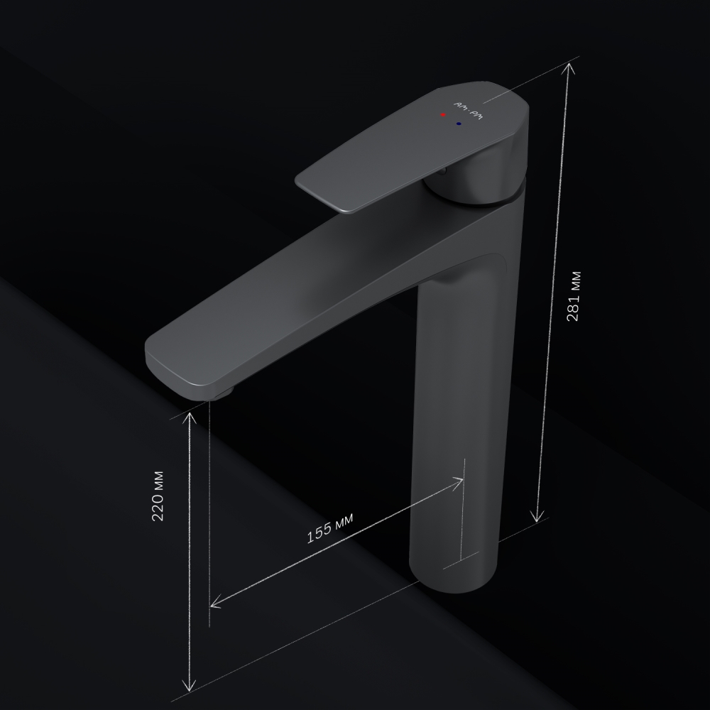 Смеситель для умывальника высокий AM.PM Gem F90A92022, черный, шт.