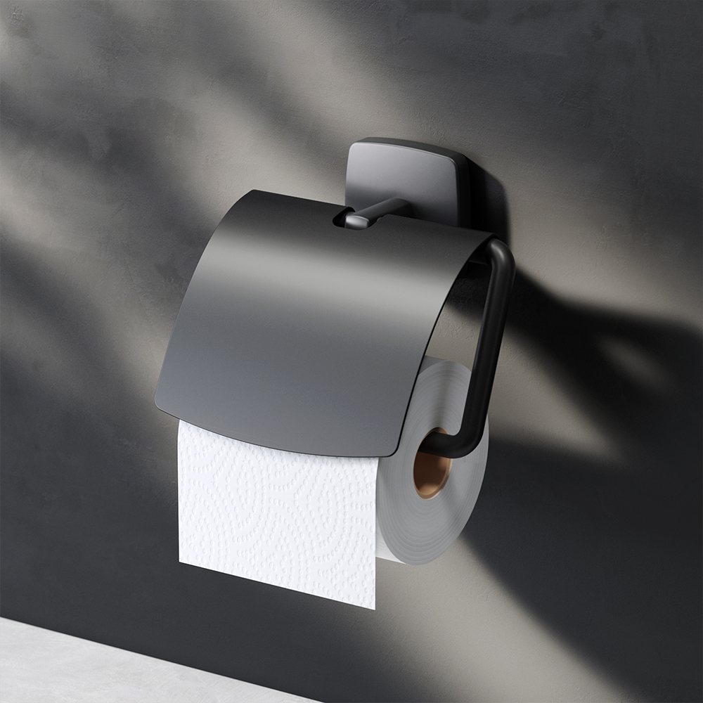 A90341422 Gem, Держатель для туалетной бумаги с крышкой, черный